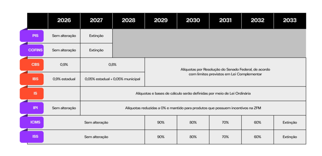 Um dos principais pontos de confusão em torno da Reforma Tributária está no seu cronograma de implantação. Do ponto de vista legal, 2026 é caracterizado como um ano de teste e convivência entre os dois sistemas tributários. É nesse período que CBS e IBS passam a existir formalmente, ainda sem substituir integralmente PIS, COFINS, ICMS e ISS.